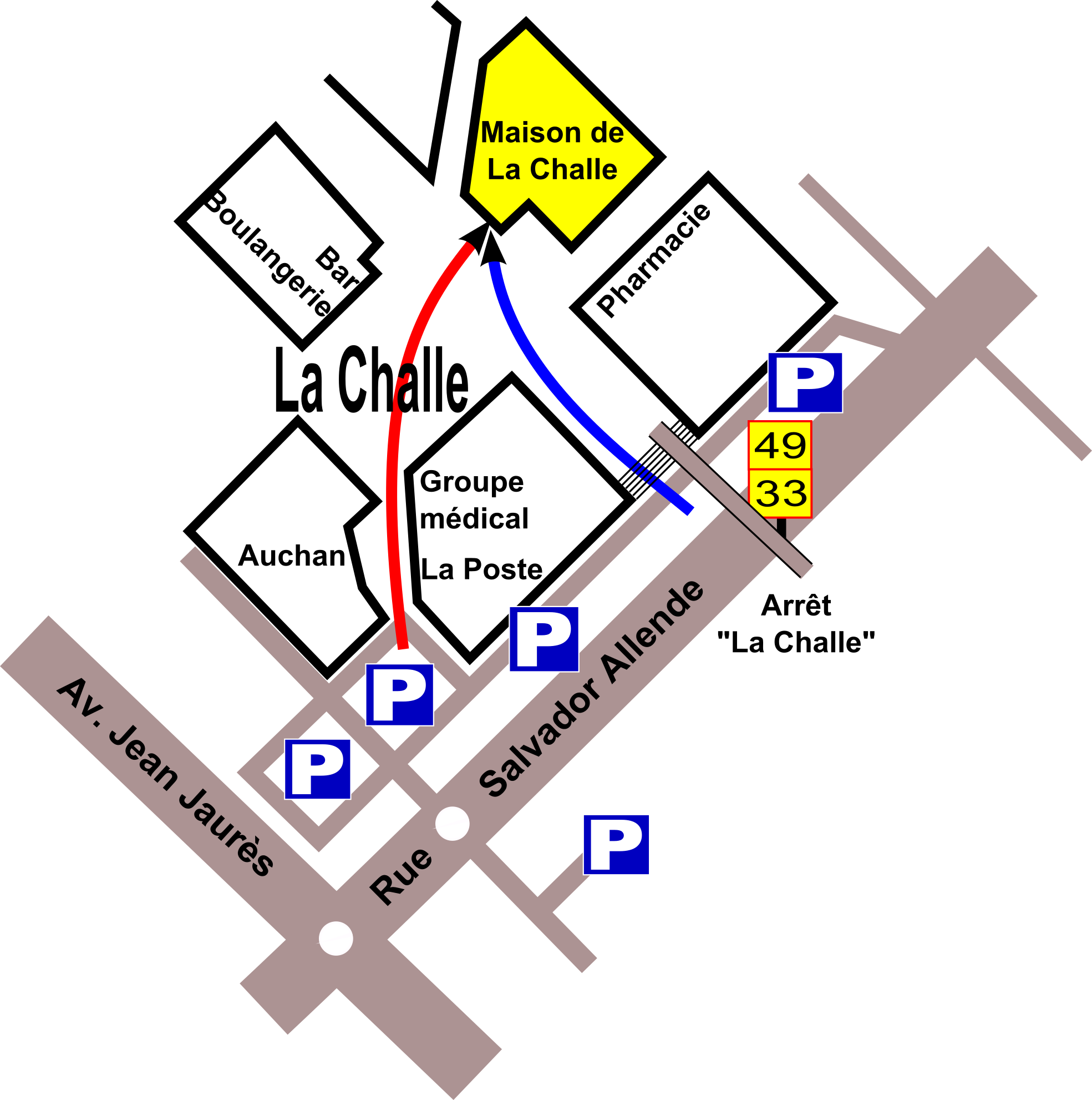 Puis bus 1233 direction Neuville-Université, arrêt La Challe (Horaire bus : 8h28 ; 9h00).